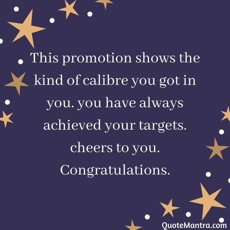 9. Promotion and prosperity are for achievers. you have sincerely worked hard and achieved what you wanted. Cheers to your achievement and promotion.